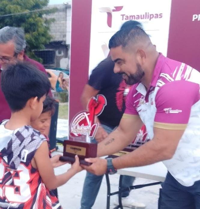 Reciben trofeos campeones de la Liga Municipal de Tochito Victoria.